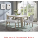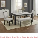 This stunning and modern dining table features a rectangular tabletop with a faux white marble surface that's glossy and reflective. which adds a contemporary and bold touch. Whether you're entertaining guests or enjoying a family dinner, this dining table is the perfect centerpiece for any dining space. This upholstered side chair is a stunning addition to any dining room or living space. The chair and bench upholstered with a soft, breathable fabric to keep you comfortable while you sit, while the nailhead trim adds an elegant, decorative touch that's sure to impress. Perfect for both formal and casual settings, this chair will quickly become a favorite for family and guests alike. .