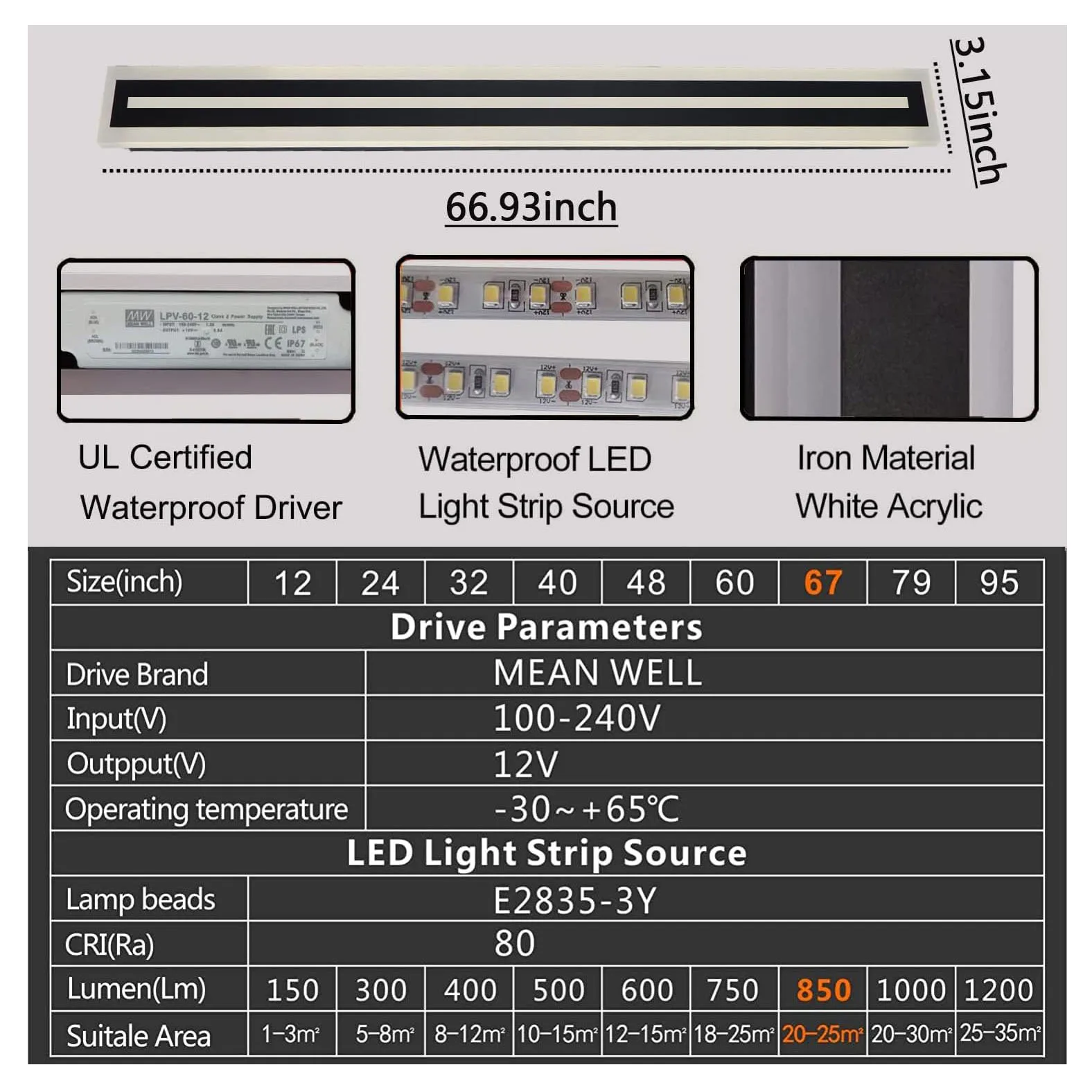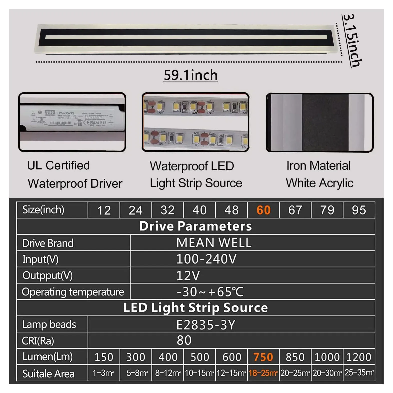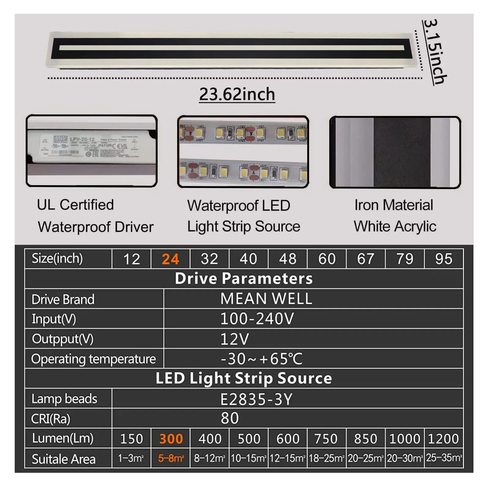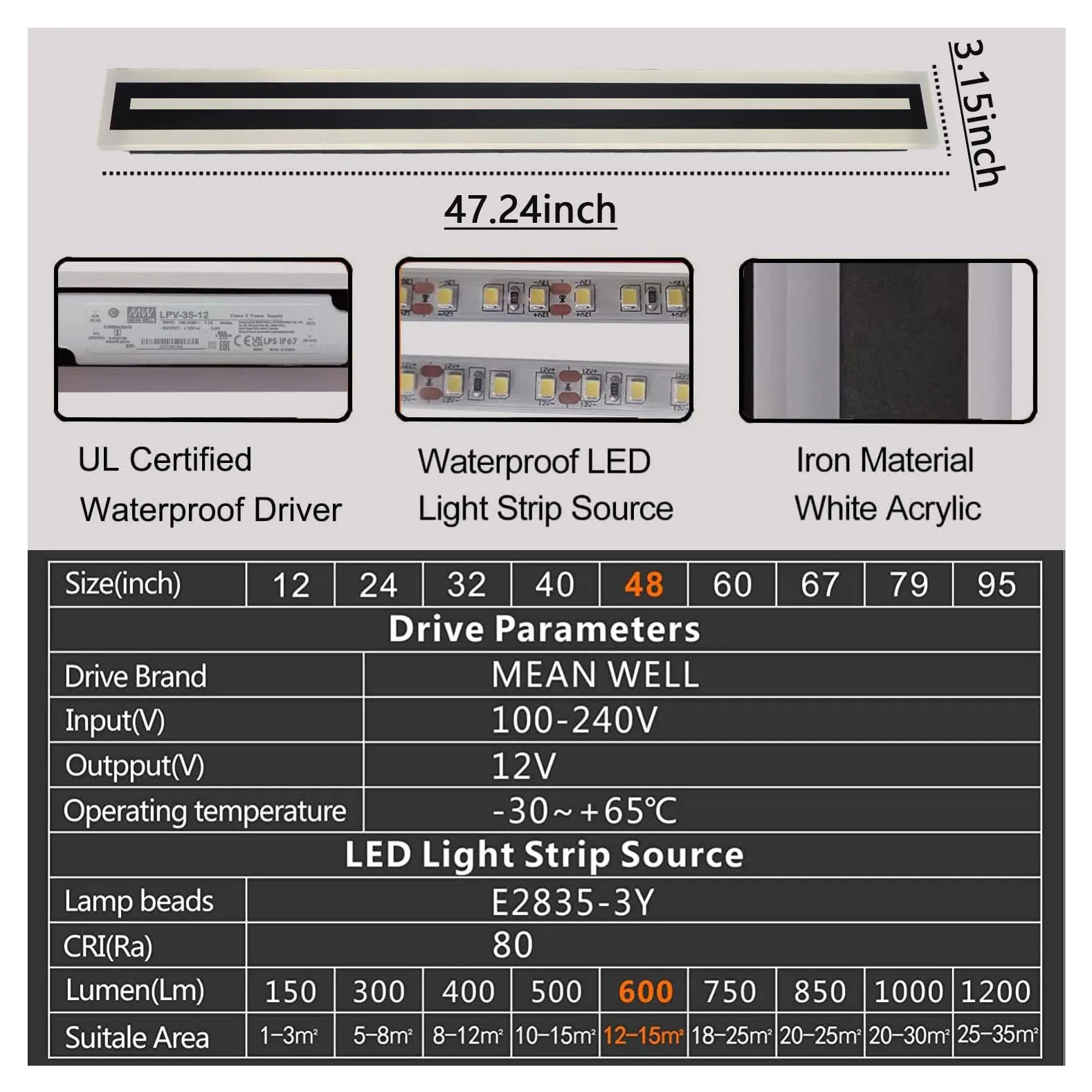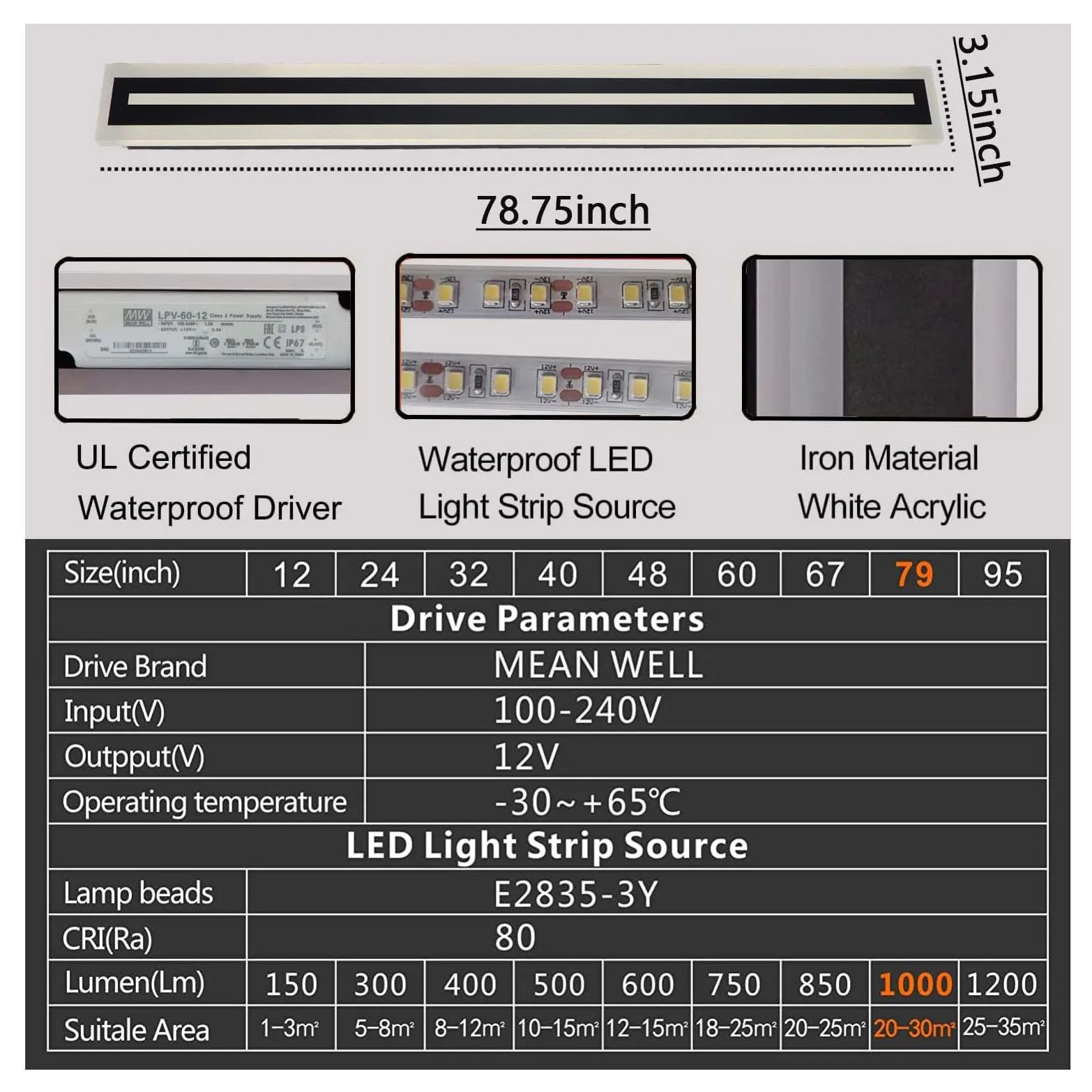 | Emitting Color | 47.2 INCH, 39.4 INCH, 66.9 INCH, 59.1 INCH, 78.9 INCH, 31.5 INCH, 23.6 INCH |