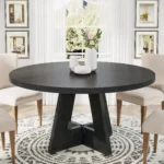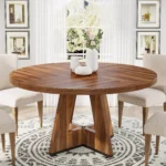 [ Farmhouse Round Dining Table ] – The spacious tabletop is consists of 4 Engineered wood board. Designed with a classic farmhouse look, Tribesigns kitchen dining table will add a touch of rustic elegance to any space. Its charming farmhouse look and retro brown color exudes warmth and coziness, creating a welcoming atmosphere for your family and friends to gather around.