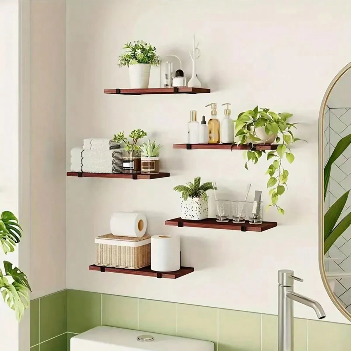 Christmas Room Decor 5pcs Equal Length Floating Wall Shelf for Bedroom Living Room Study Home Organization